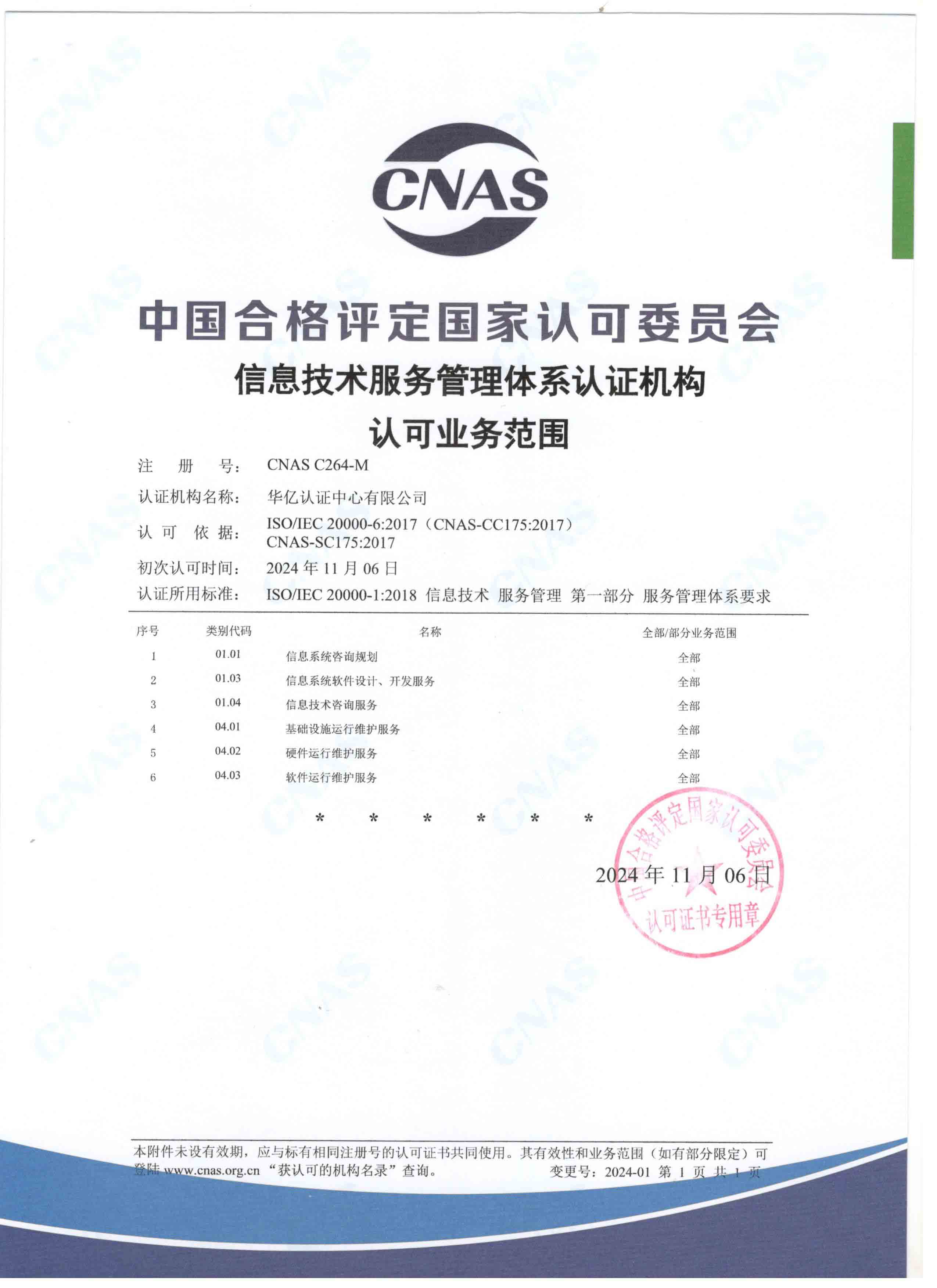 CNAS信息技术服务管理体系认证机构认可业务范围
